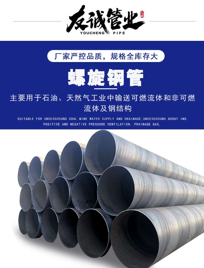 螺旋鋼管是以帶鋼卷板為原材料,經(jīng)常溫擠壓成型,以自動雙絲雙面埋弧焊工藝焊接而成的螺旋縫鋼管。